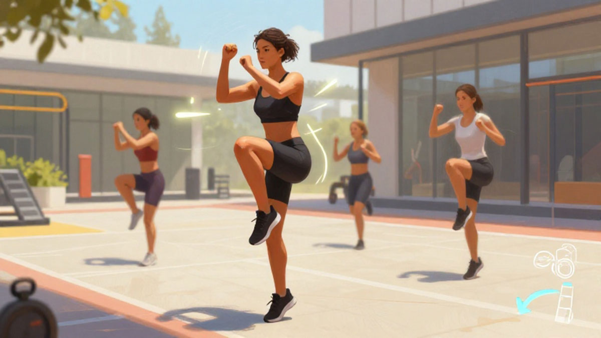 - High Knees – Angkat lutut setinggi pinggul sambil bergerak di tempat selama 1 menit. Latihan ini membantu memanaskan otot paha depan dan meningkatkan koordinasi kaki.